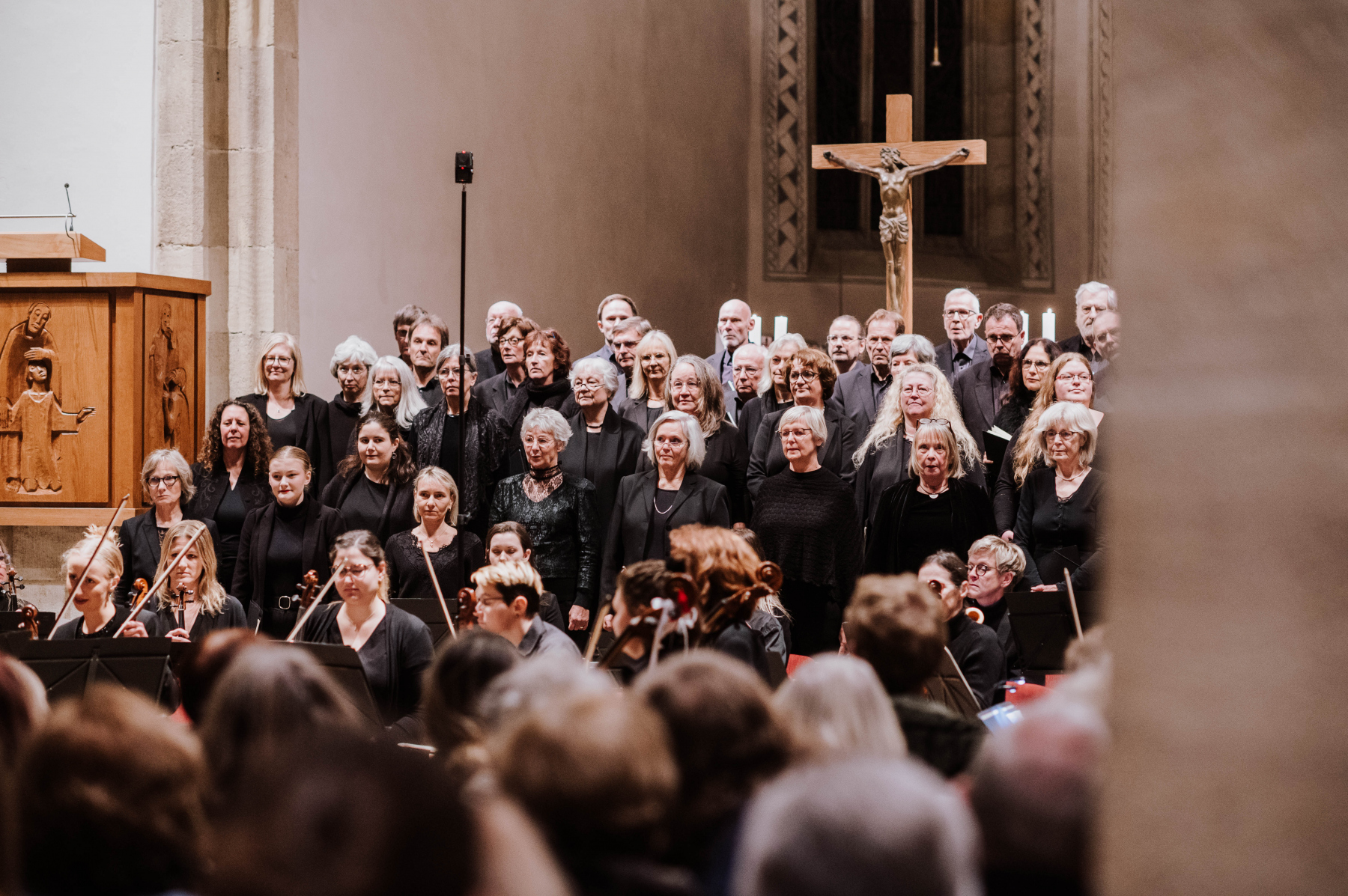 Am 11. November 2022 war es endlich so weit, wir konnten das Ergebnis unserer monatelangen Proben endlich präsentieren. In der Heilig-Geist-Kirche in Reutlingen führten wir zum ersten Mal gemeinsam mit einem Projektchor und einem Projektorchester unter der Gesamtleitung von Stephan Dominikus Wehrle das Mozart Requiem auf. Es sangen die vier fantastischen Solisten Julia Hinger (Sopran), Joanna Jaworowska (Mezzosopran), Andreas Weller (Tenor) und Juan Camilo Yepes (Bariton).