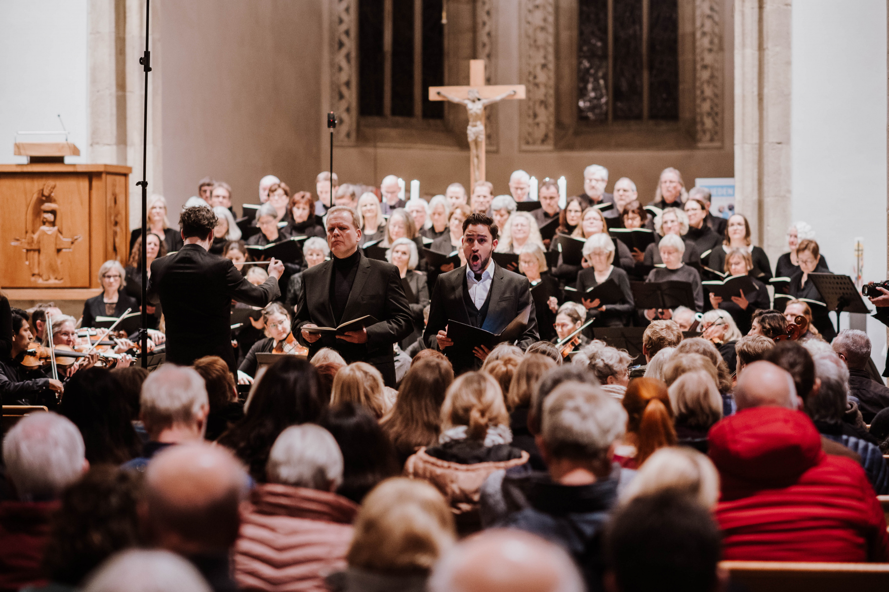 Für die Projektsänger*innen war es ein tolles Erlebnis, das einstudierte Werk vor so vielen Menschen vorzutragen. Noch weit nach Beginn des Konzertes strömten Besucher*innen in die schon bis auf den letzten Platz gefüllten Kirche. Nach so einem tollen Konzert war die Vorfreude auf das zweite Konzert umso größer.