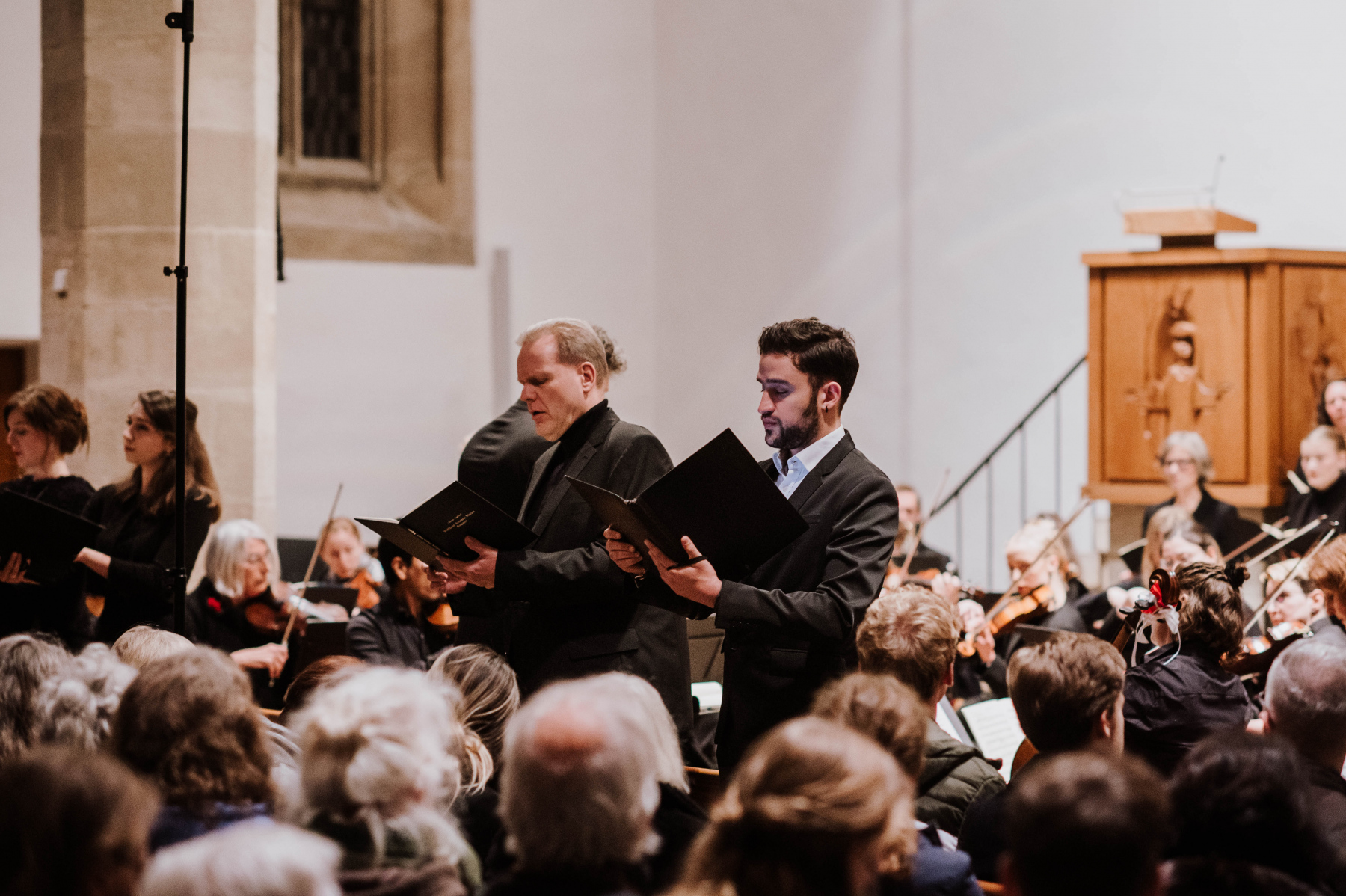Am 11. November 2022 war es endlich so weit, wir konnten das Ergebnis unserer monatelangen Proben endlich präsentieren. In der Heilig-Geist-Kirche in Reutlingen führten wir zum ersten Mal gemeinsam mit einem Projektchor und einem Projektorchester unter der Gesamtleitung von Stephan Dominikus Wehrle das Mozart Requiem auf. Es sangen die vier fantastischen Solisten Julia Hinger (Sopran), Joanna Jaworowska (Mezzosopran), Andreas Weller (Tenor) und Juan Camilo Yepes (Bariton).
