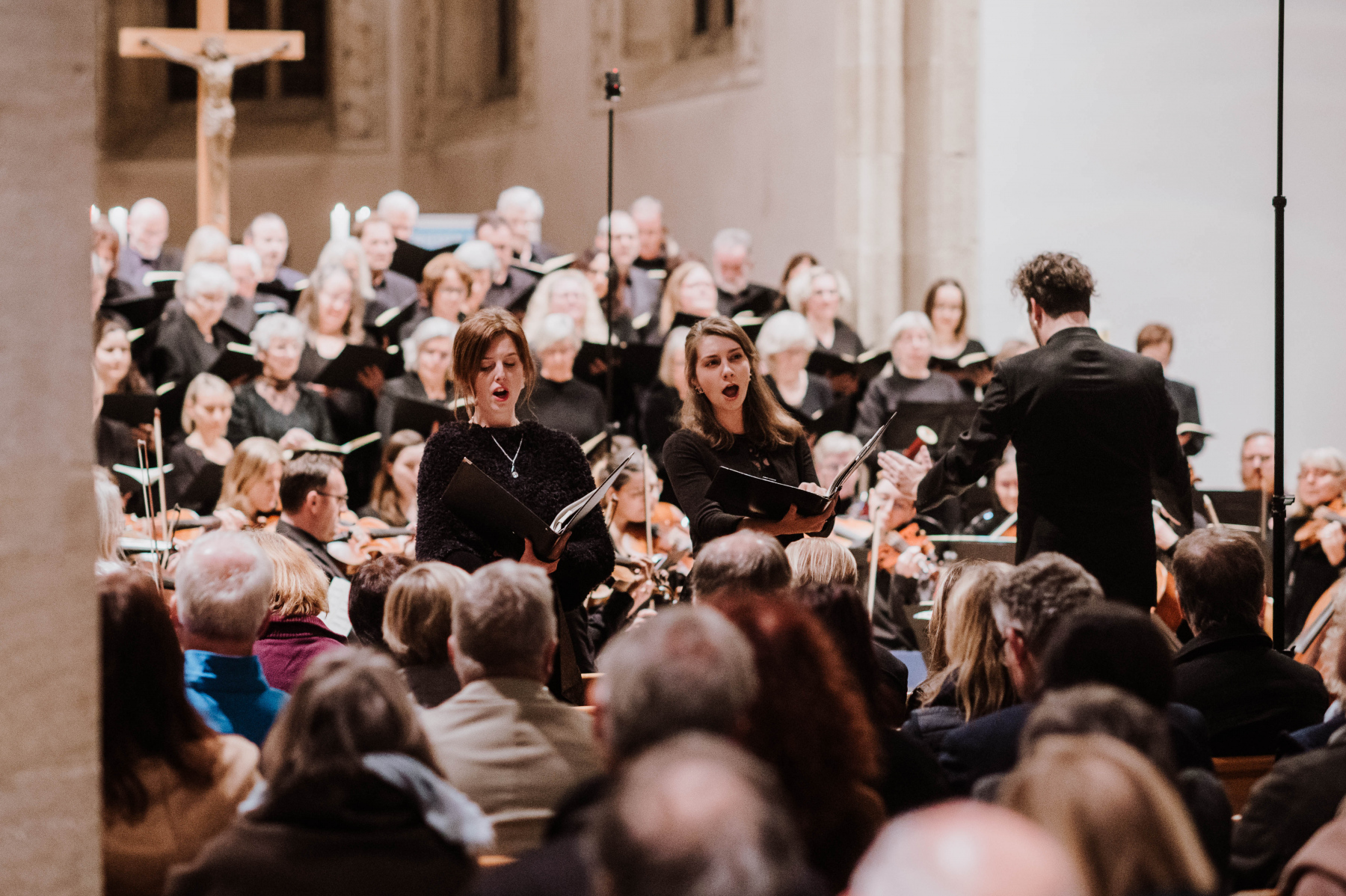 Am 11. November 2022 war es endlich so weit, wir konnten das Ergebnis unserer monatelangen Proben endlich präsentieren. In der Heilig-Geist-Kirche in Reutlingen führten wir zum ersten Mal gemeinsam mit einem Projektchor und einem Projektorchester unter der Gesamtleitung von Stephan Dominikus Wehrle das Mozart Requiem auf. Es sangen die vier fantastischen Solisten Julia Hinger (Sopran), Joanna Jaworowska (Mezzosopran), Andreas Weller (Tenor) und Juan Camilo Yepes (Bariton).
